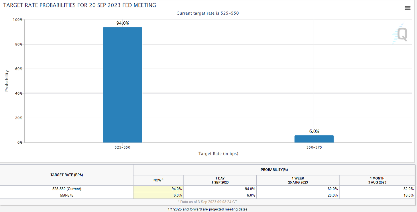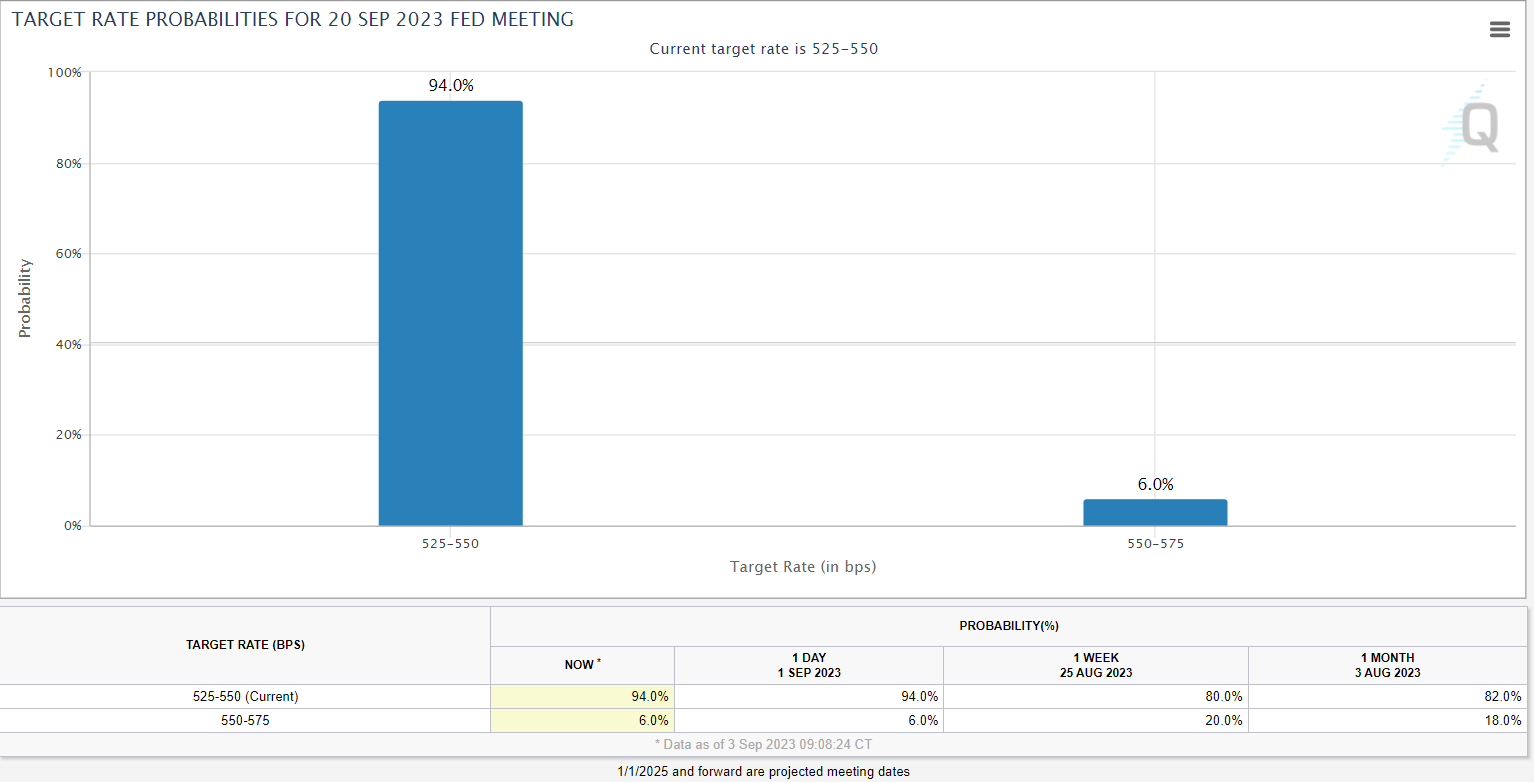 The market has raised the odds of the Fed holding rates steady in the September FOMC to 94%.