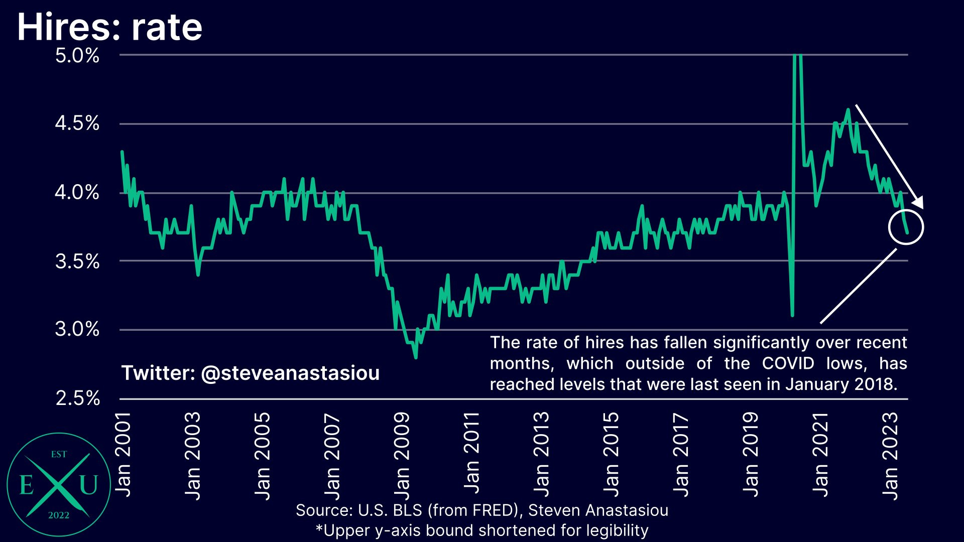 In reality, the new hiring rate has decreased particularly sharply in the past two months, dropping from 4.0% in May to 3.7% in July/2023: