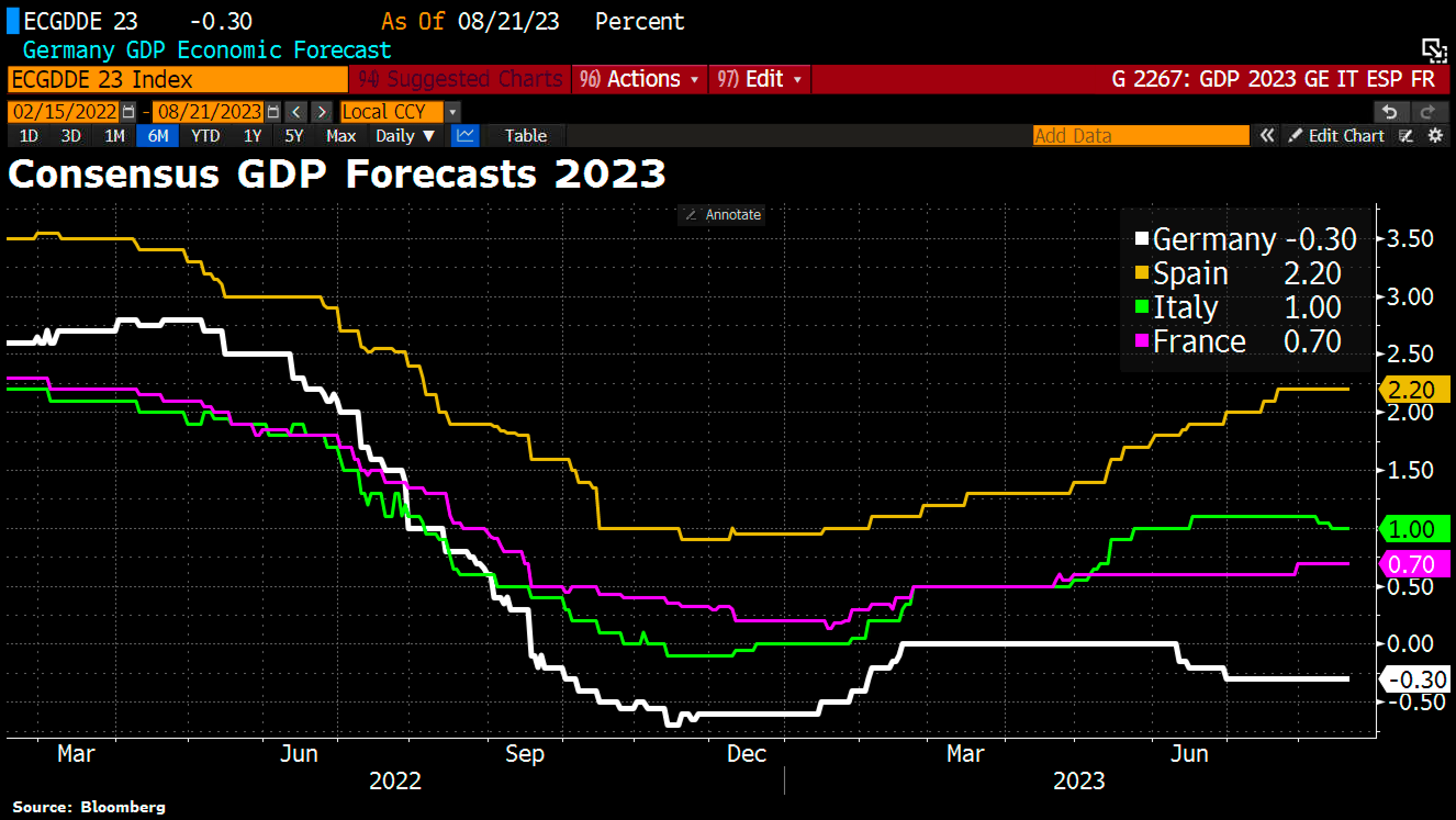According to forecasts, Germany could be the only major European economy to contract in 2023 (GDP down -0.3% y/y, according to Bundesbank forecast).