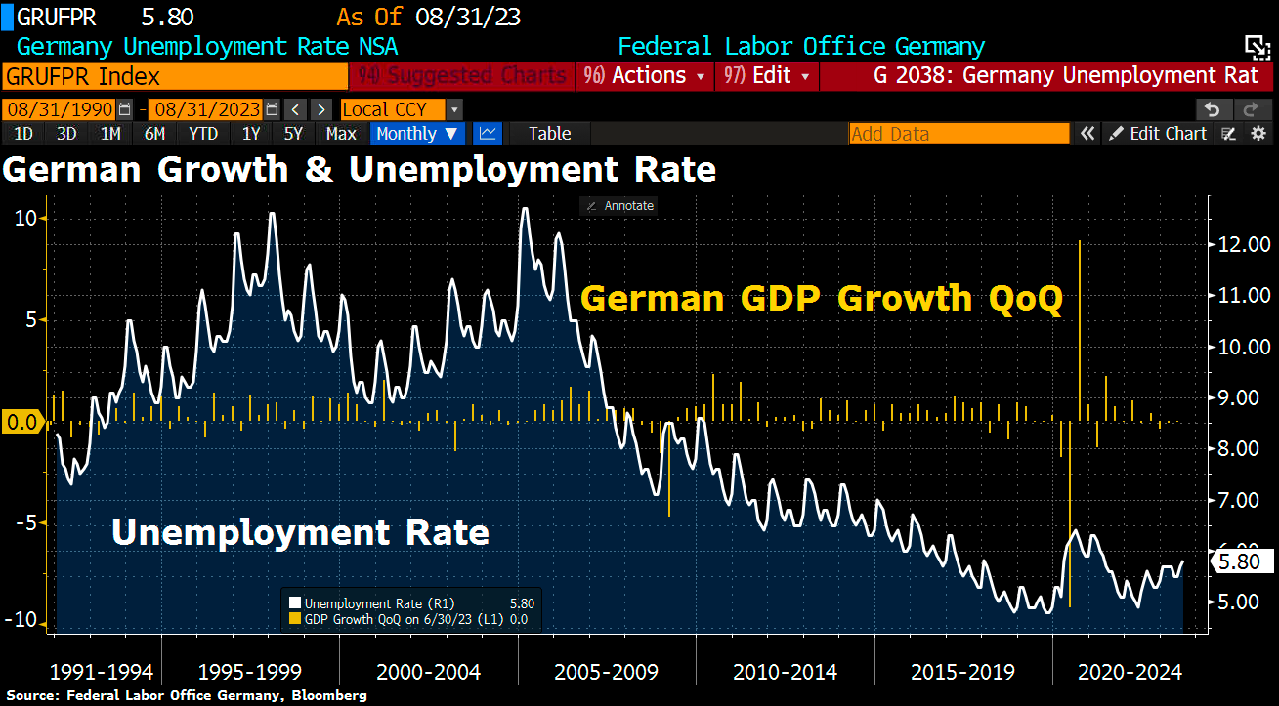 Germany's unemployment rate has been rising sharply in the past 3 months, reaching 5.8%. In the following months, if the unemployment rate continues to rise, Germany will sink deeper into recession.