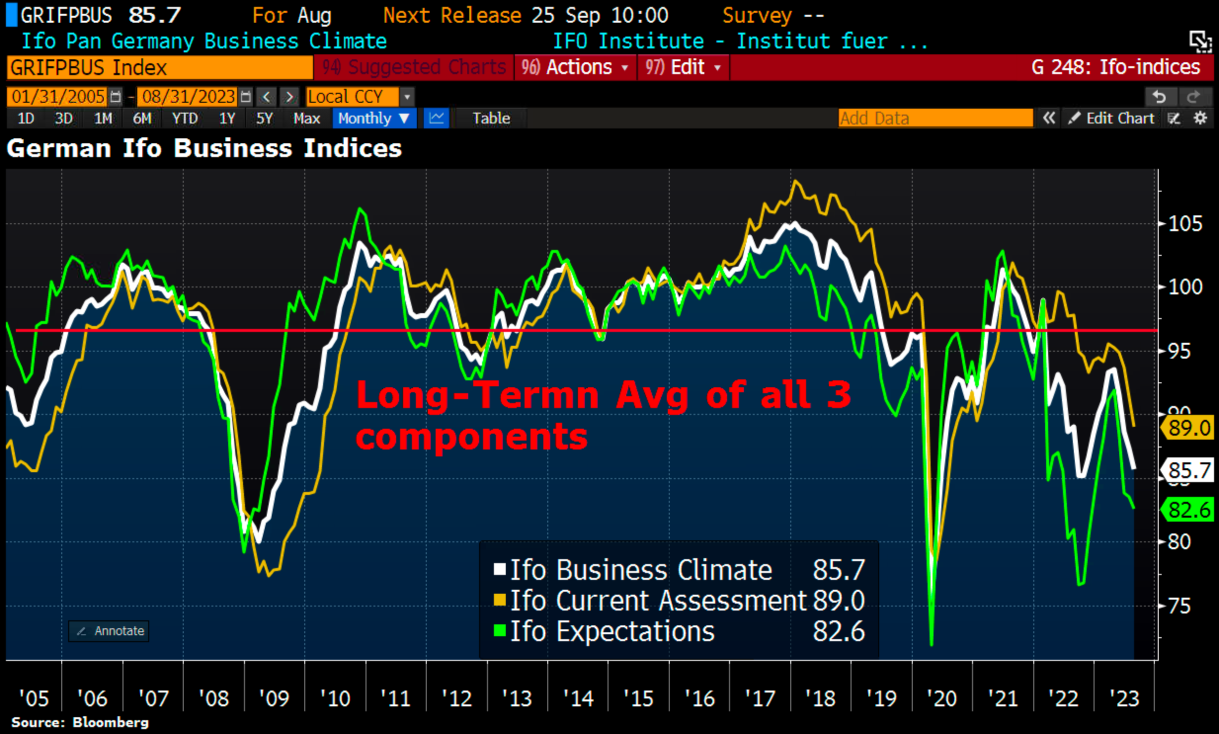 Germany's Ifo index falls to disappointing figure 85.7 in August (lower than expected 86.7) - the lowest since October 2022 (peak of last year's energy crisis).