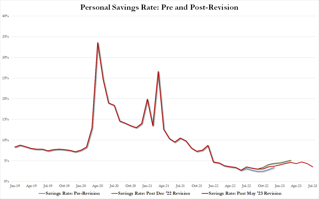 The US savings rate has dropped from 4.3% to just 3.5% in July/2023,