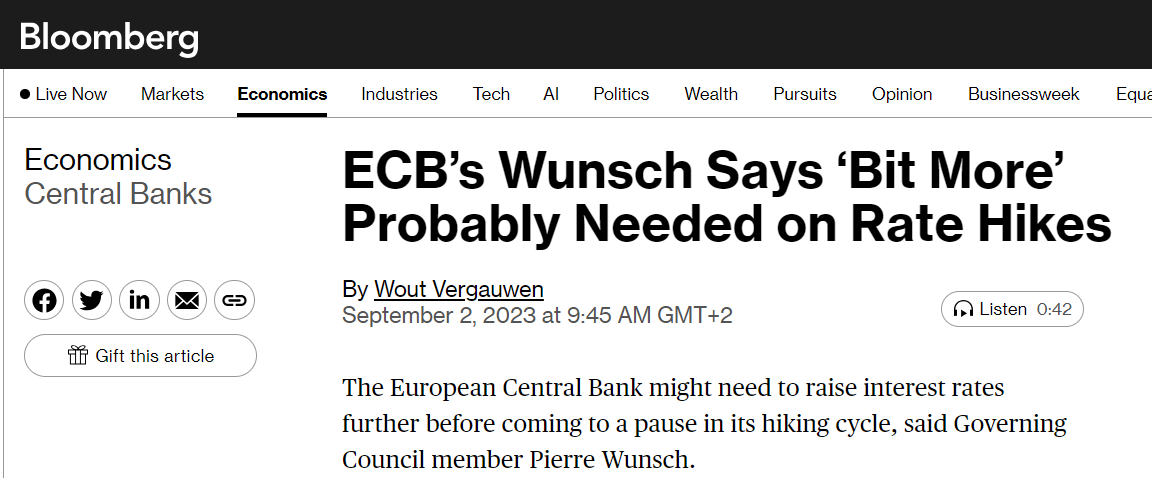 ECB member P. Wunsch also said that the ECB may need to raise interest rates a bit higher.