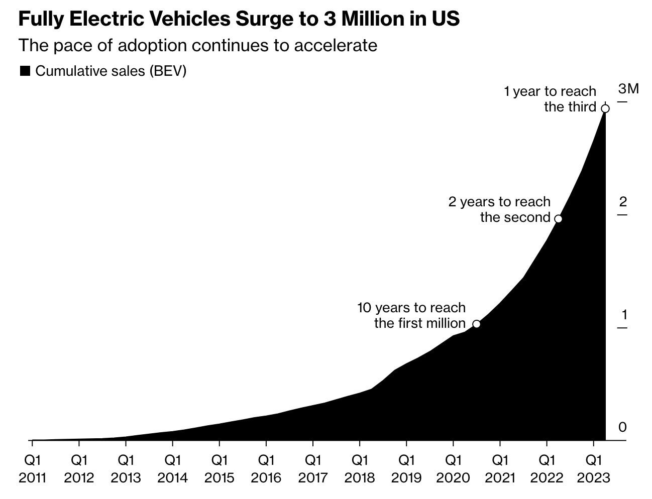 Previously, in the US, EV consumption surged: The US took 10 years to sell the first 1 million EVs, 2 years for the next 1 million, but only 1 year for the third 1 million.