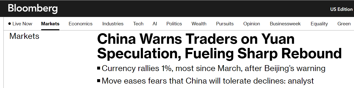 Two weeks ago, China bolstered CNY defense via direct warnings to speculators + setting a higher daily CNY-USD reference rate than the market.