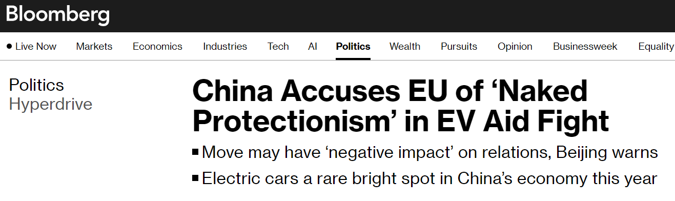 The EU is pushing to investigate China's subsidies for the electric vehicle (EV) industry due to concerns that EV consumption from China in Europe will explode like in the US.