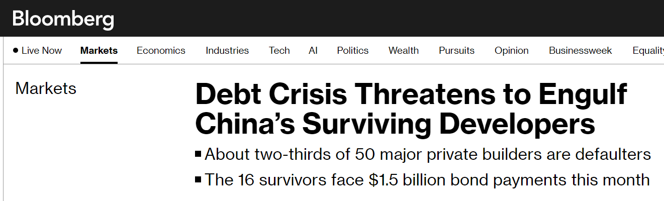 About 2/3 of China's 50 largest private construction companies have defaulted.