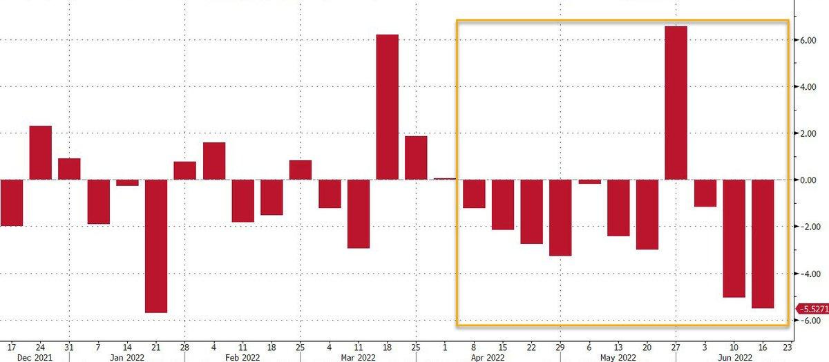 The last time the S&P500 plunged for 10/11 consecutive weeks was during the 1965-1985 stagflation. Currently, S&P500 has also declined in 10 out of 11 consecutive weeks: