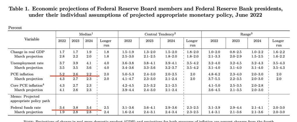 FED interest rates are expected to rise to 3.4 by the end of this year and 3.8 by the end of 2023, much higher than the previous forecasts of 1.9 and 2.8.