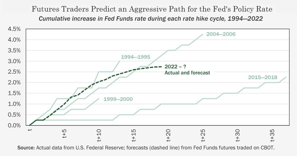 In addition, traders in the Futures market have predicted the trajectory of the cumulative interest rate hikes in this rate hike cycle as shown in the figure below.