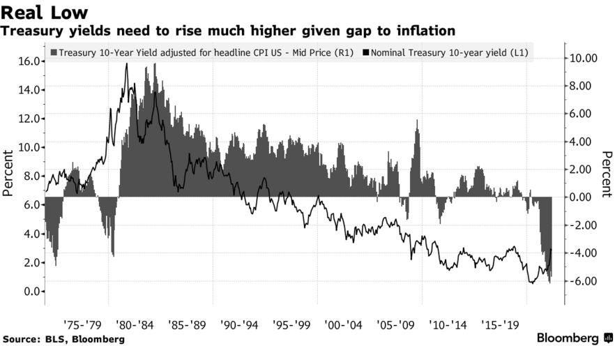 However, the rise in bond yields is still not enough to "compensate for losses" for the escalation speed of inflation as real interest rates remain negative.