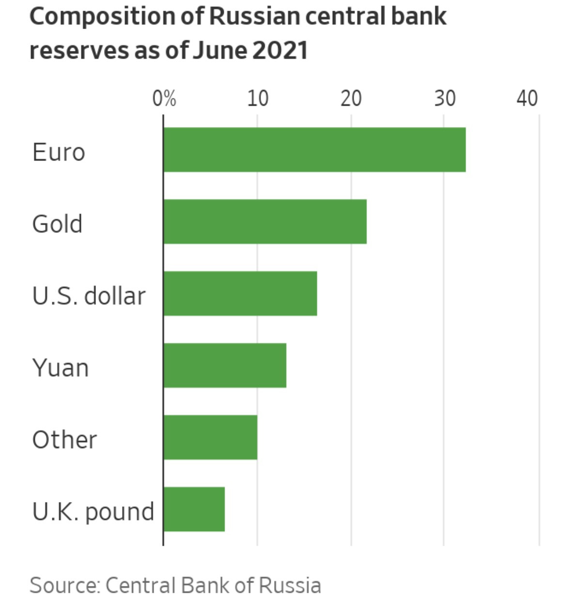 Before the war, EUR, gold, and USD were Russia's three main strategic reserve currencies.