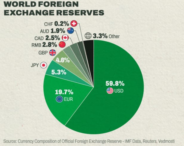 However, foreign exchange reserves in USD are trending downward: from 72% in 1999 to 59% in 2021.