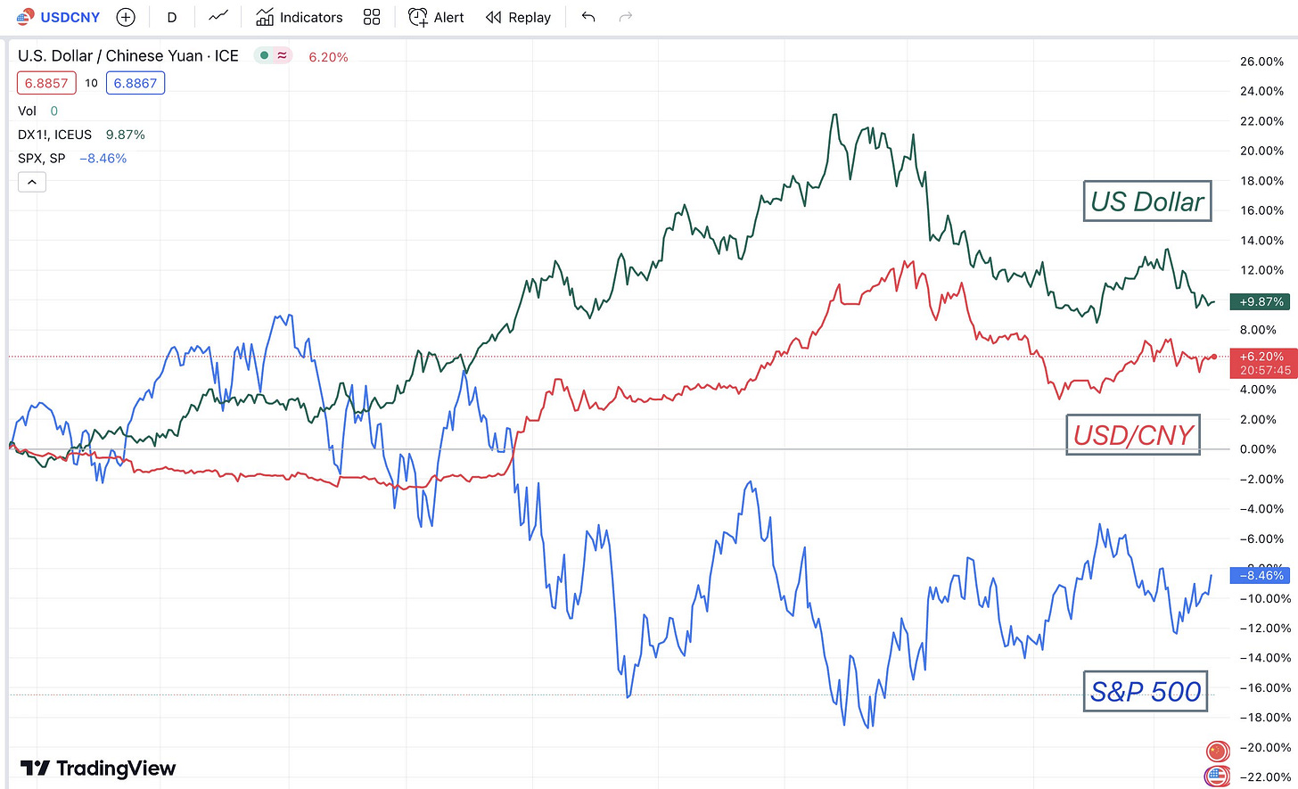 Last week: Russia announced that they are considering using CNY as a strategic reserve currency alternative to USD.
