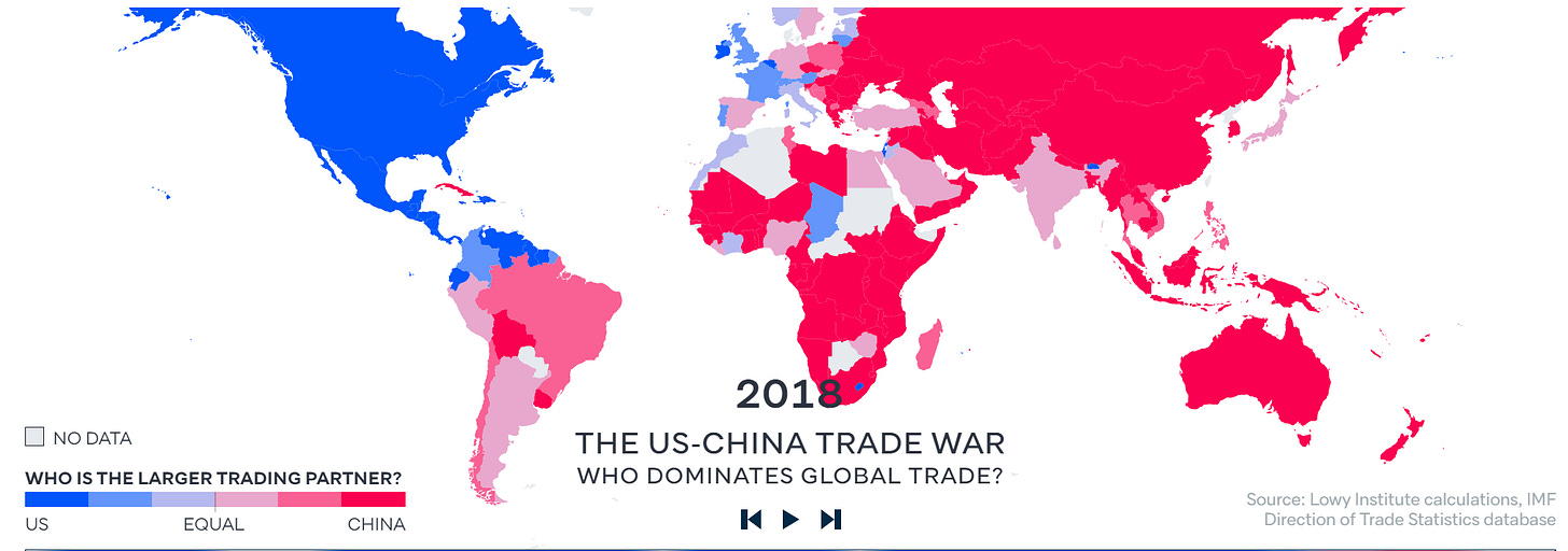 By 2018, about 65% of countries worldwide traded more with China than with the US.
