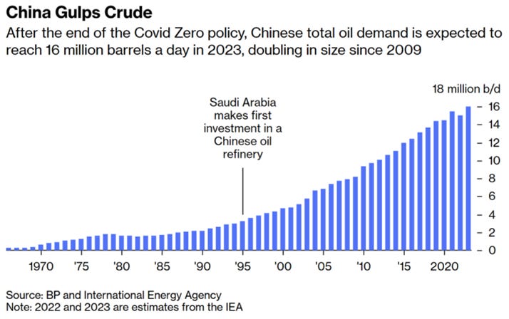 2 weeks ago: Saudi Arabia (country exporting 6.2 million barrels of oil/day) declares it will consider selling oil in CNY and states that relations with the US "have deteriorated under President Biden".