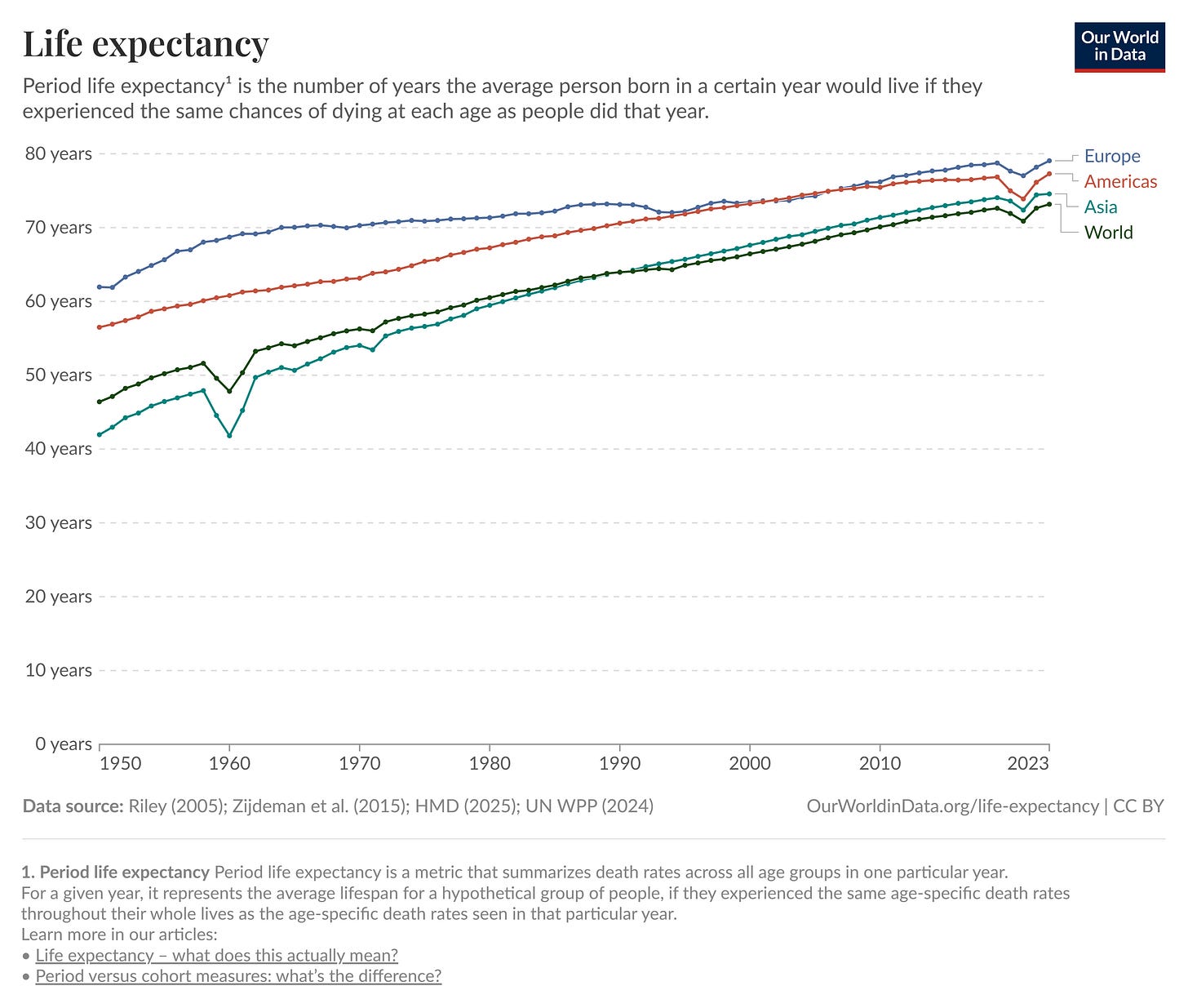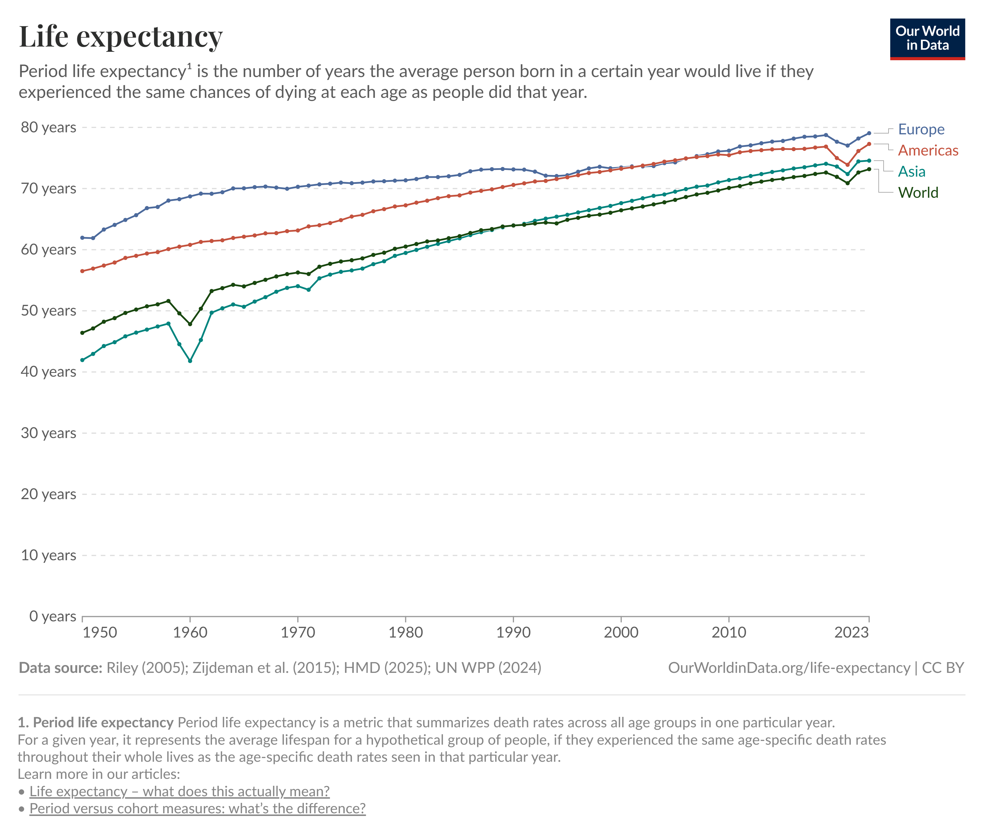 Tuổi thọ toàn cầu đã tăng thêm khoảng 30 năm kể từ 1950