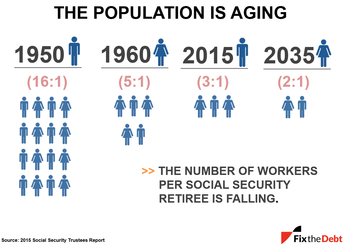 Tại Mỹ, tỷ lệ người lao động trên mỗi người nghỉ hưu đã giảm từ 16 vào thập niên 1950 xuống còn dưới 3 hiện nay.