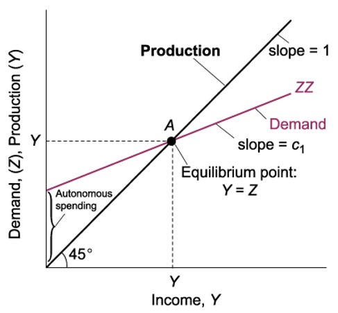 1 always lies in the range from 0 to 1). When cZ = Y is largerZ = Y then Output (Y) will be larger. However, if considering the equilibrium between Demand (Z) and Income (Y): equilibrium output (demand) is given in the graph below: Z = c