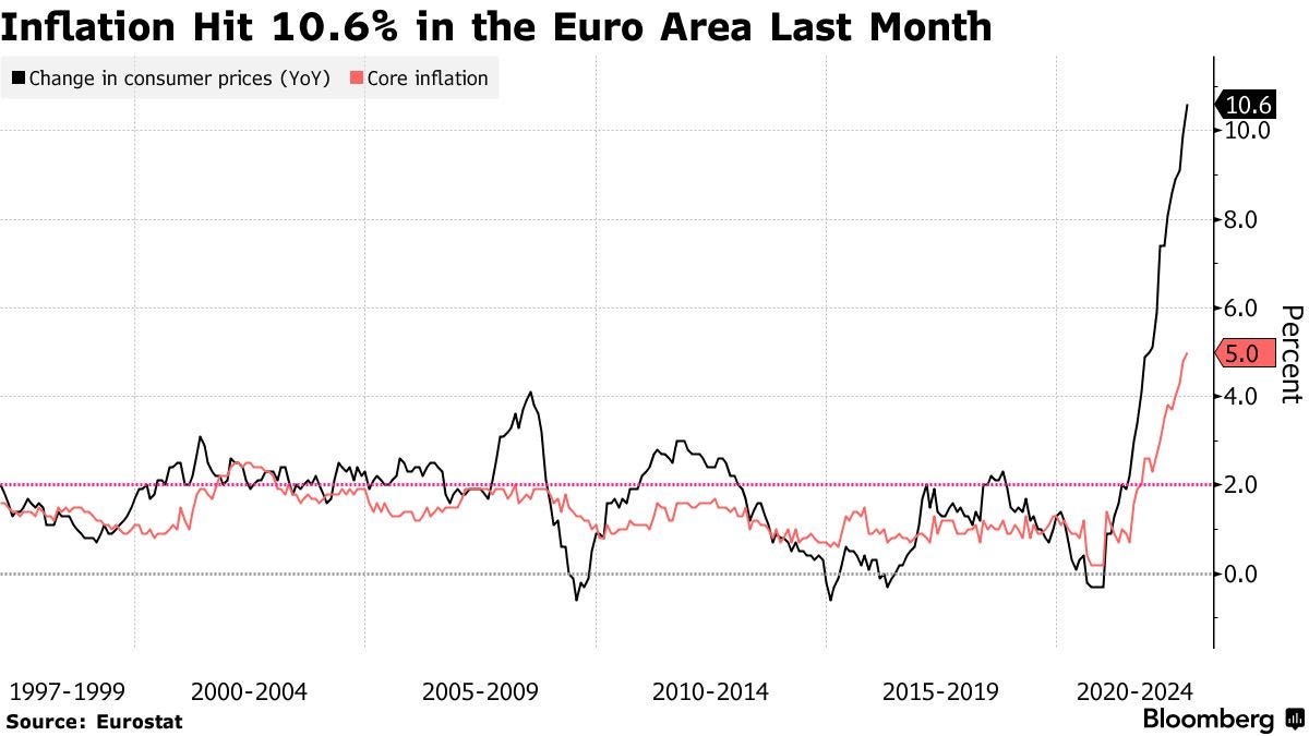 Inflation in the Eurozone has officially reached double digits
