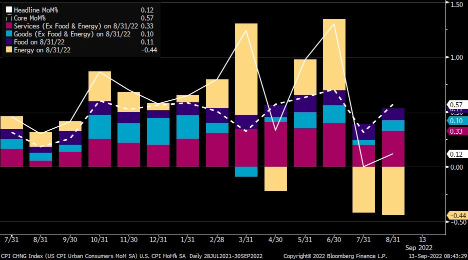 The clearest signs of inflation not being under control and gradually shifting from energy to other items are shown through monthly CPI growth: