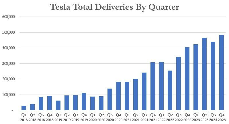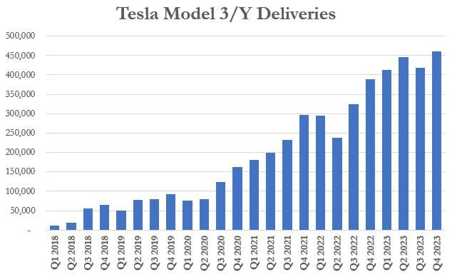 Tesla's Q4 delivery volume at record high but misses 2023 target