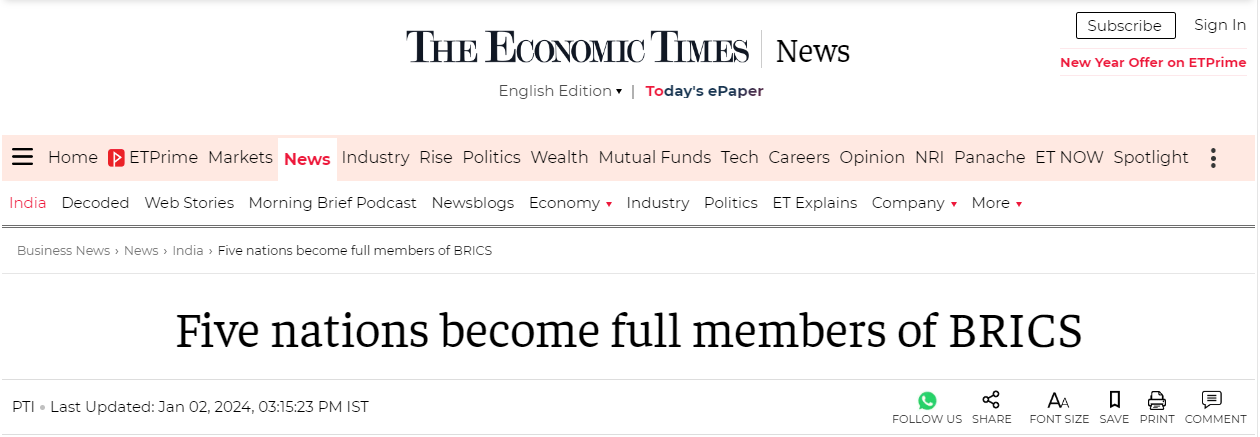 January 1, 2024 marks the official entry of 5 new BRICS members: Egypt, Ethiopia, Iran, Saudi Arabia and UAE.