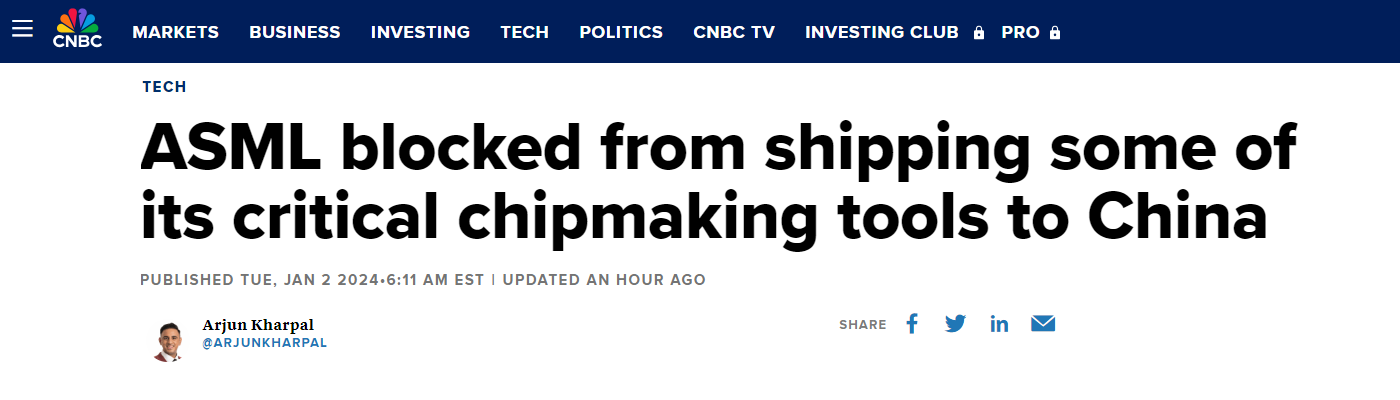 ASML – world's leading chip equipment maker – canceled some shipments to China at the request of the US government.