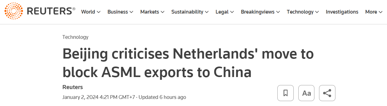 Reason: Dutch government recently revoked some licenses to ship lithography systems to China.