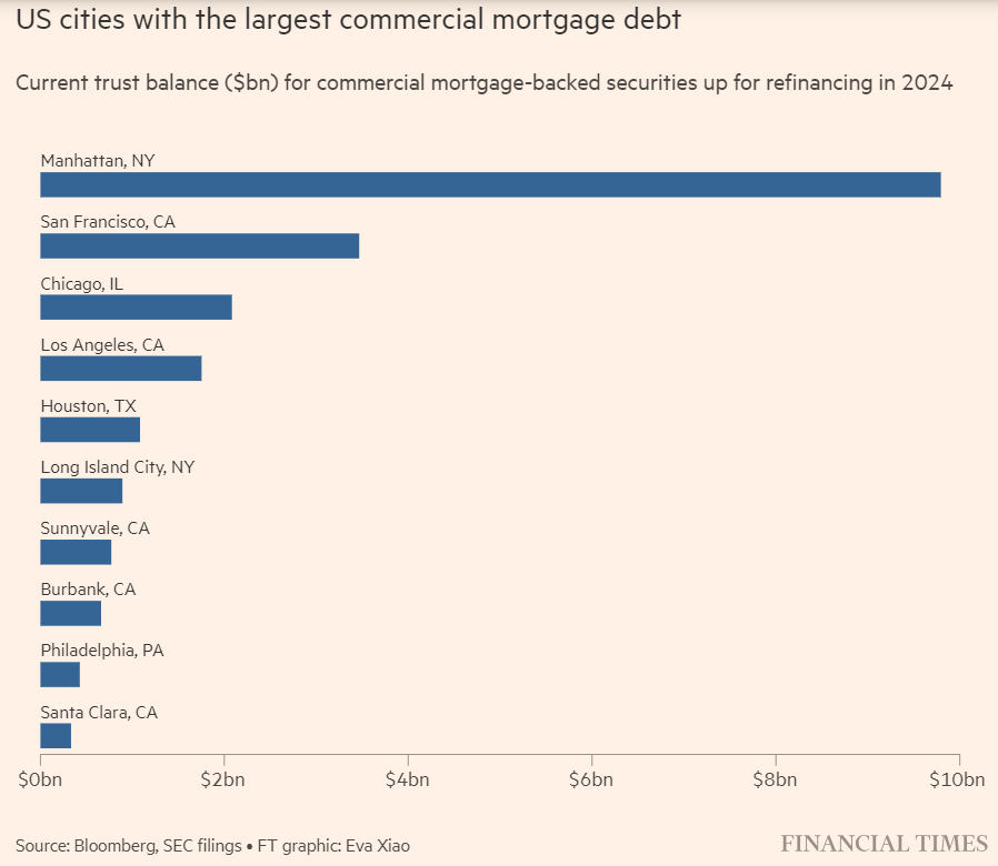 According to data from the Mortgage Bankers Association, there are $117 billion in office building mortgage loans that need to be repaid or refinanced in 2024.