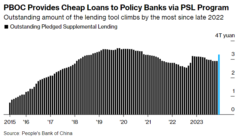 To stimulate the economy, especially the real estate sector, China injected 50 billion USD into policy banks, boosting funding for housing and infrastructure projects