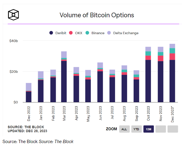 Volume of Bitcoin options contracts in past December rises to unseen high.