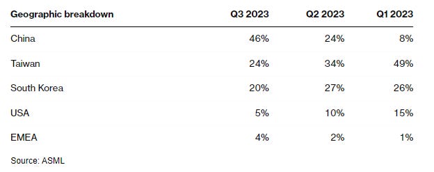 China accounted for nearly half of ASML's Q3 sales – compared to 24% in previous quarter and 8% in three months ending March.
