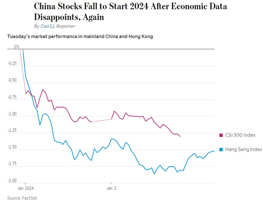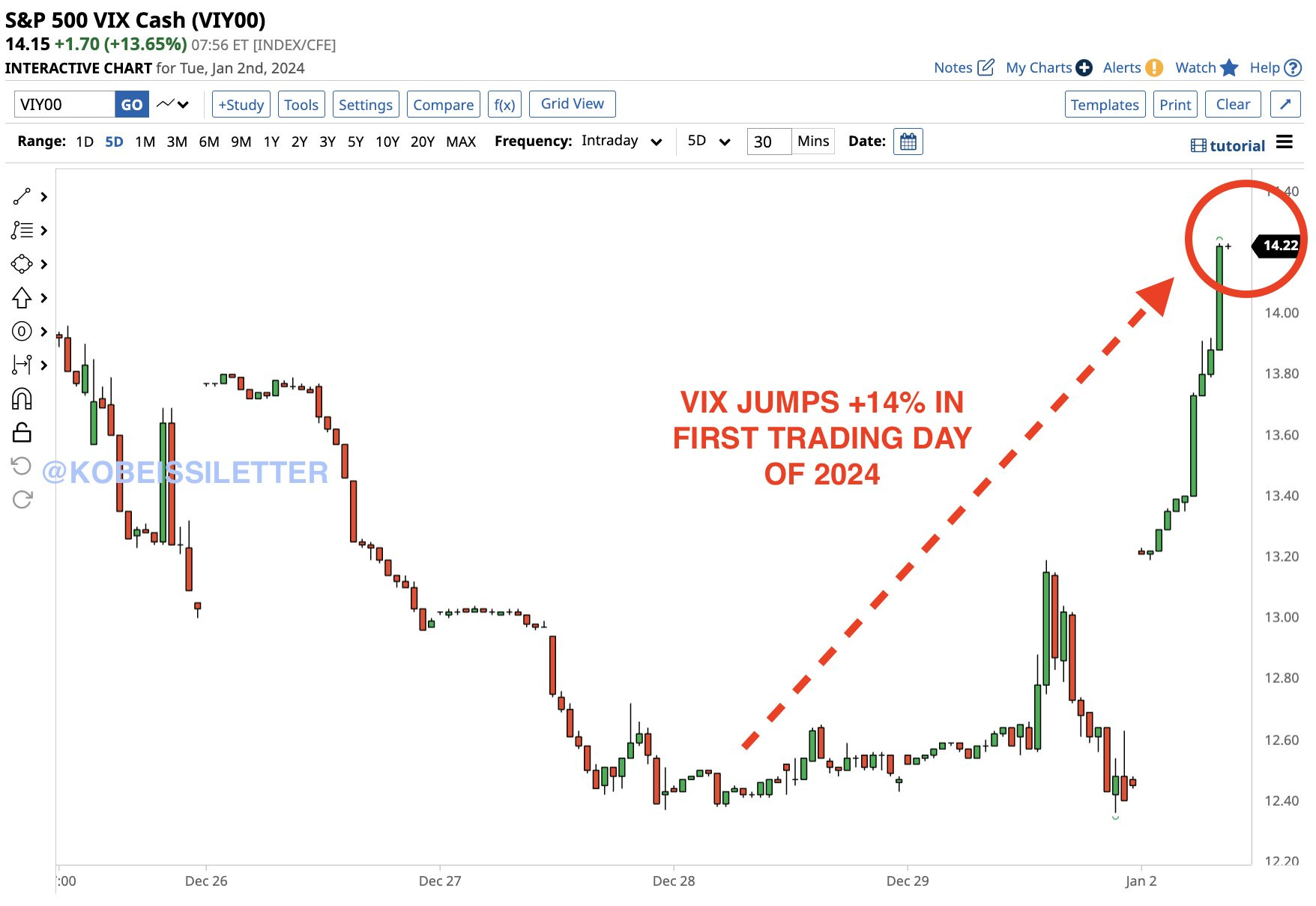 $VIX volatility index up 14% on first trading day of 2024 — largest daily move since 10/13.