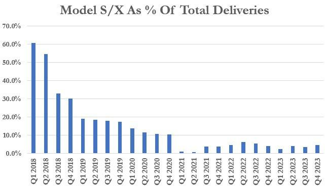 Model 3 and Model Y remain the main drivers of revenue, while Model S, Model X, and Cybertruck account for only about 5% of total quarterly deliveries