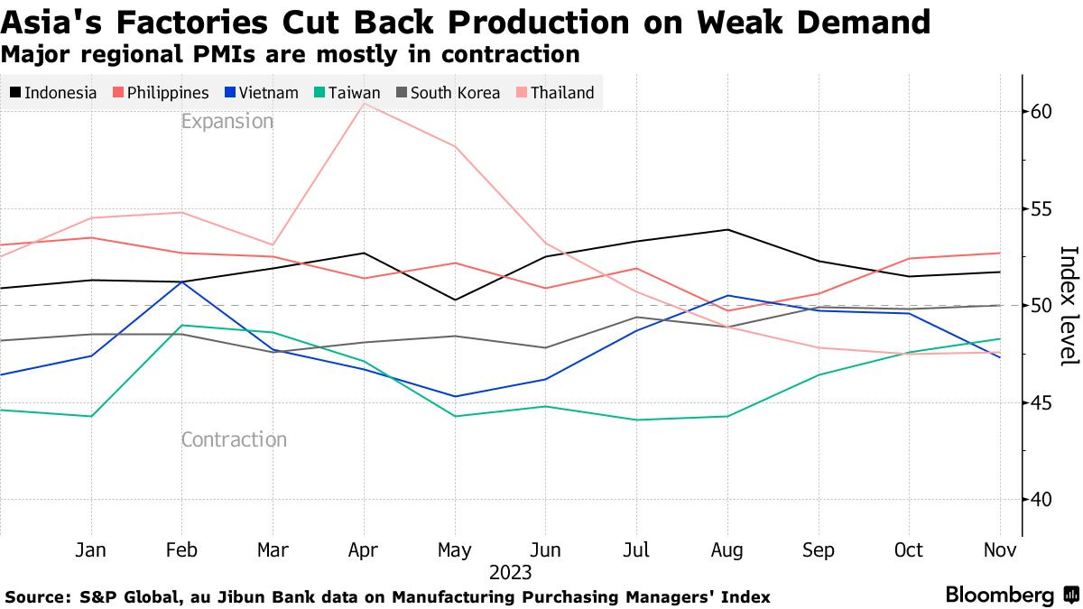 Korea's PMI slightly down to 49.9, new orders continue to decline due to weak domestic economy and slowing demand from China.