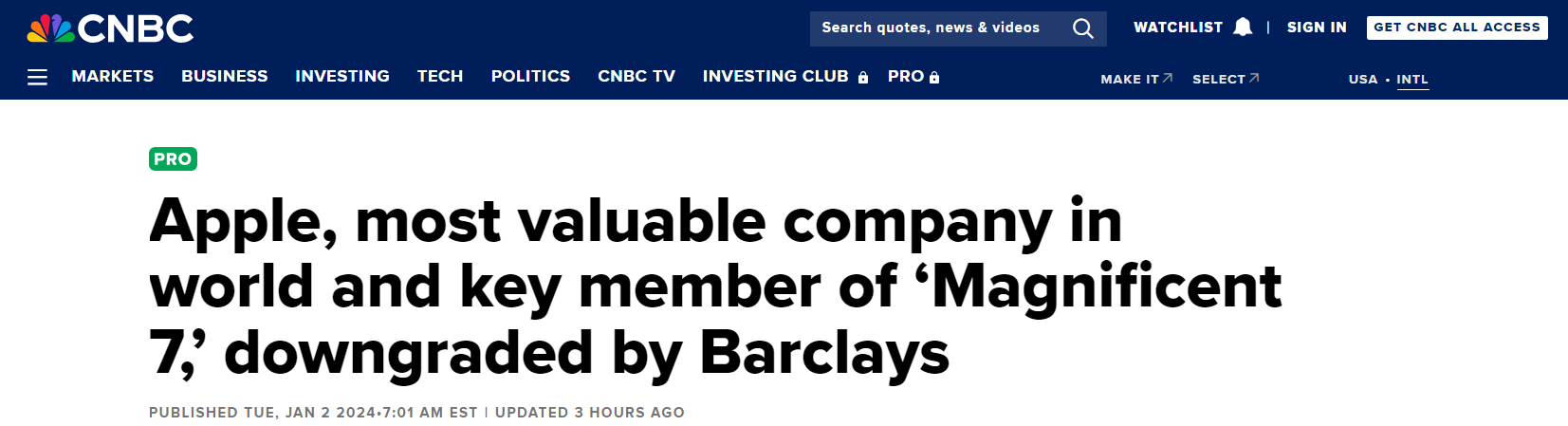 Barclays downgrades Apple from Equal Weight to Underweight, expressing concerns about prolonged weak results and unsustainable product expansion.