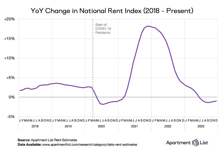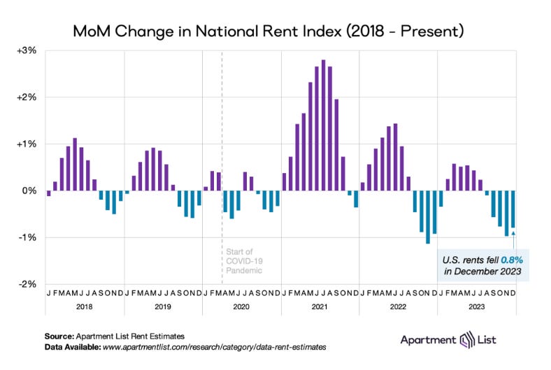=> Renters suddenly have more options and rent prices will continue to fall in 2024