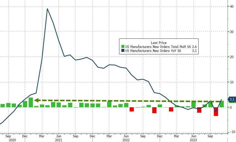 Factory orders in November rose +2.6% MoM (expected +2.4%) — the largest monthly increase since January 2021.