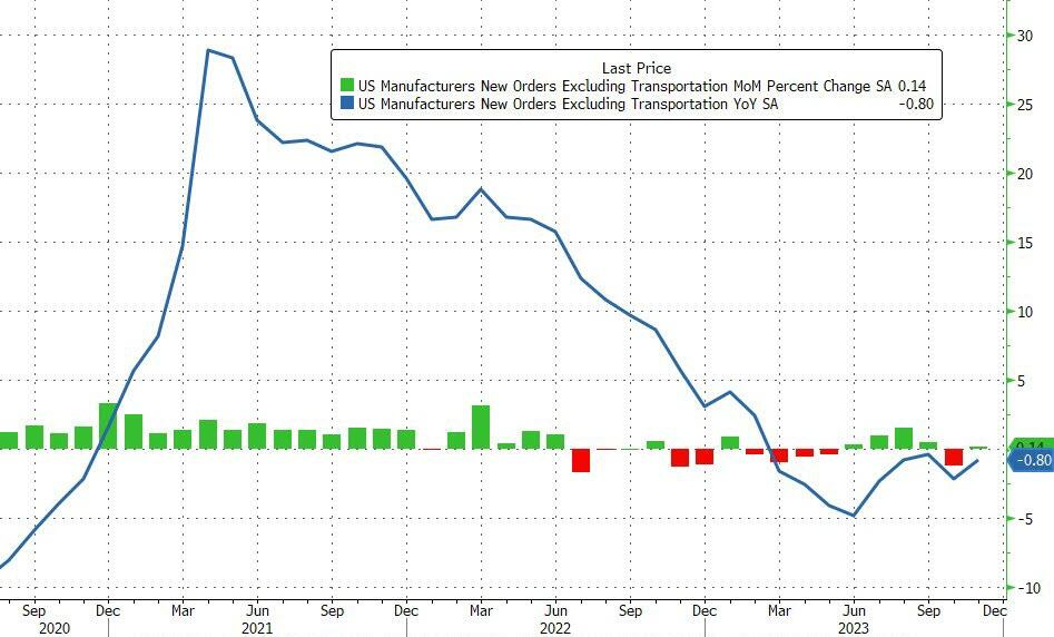 Core factory orders (excluding transportation) only up +0.1% M/M, equivalent to -0.8% Y/Y