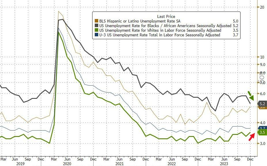 By race: Whites (3.5%), Blacks (5.2%), Asians (3.1%), and Hispanics (5.0%)