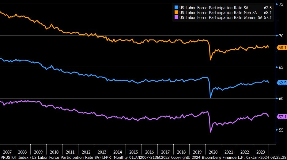 Of which, the prime-age (25-54 years) labor force participation rate in December fell to 83.2%