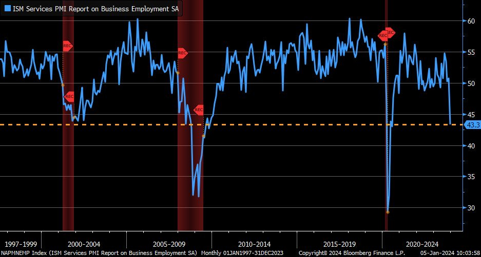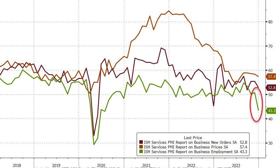 Employment index plunged to 43.3 - the sharpest contraction since post-pandemic and even the 2001 recession wasn't this low