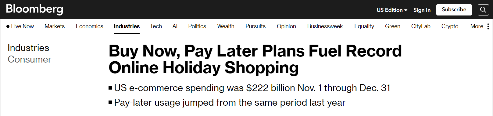Revenue "Buy now, Pay later" reached a record 16.6 billion USD in the past 2 months, up 14% from 2022.