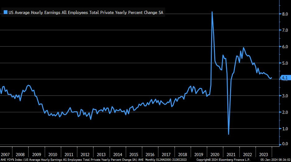 Average hourly earnings in December +4.1%Y/Y, higher than the estimate of +3.9% and previous month's +4% Y/Y