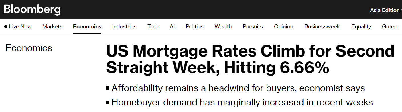 30-year mortgage rate rises to 6.66% for 2 consecutive weeks.