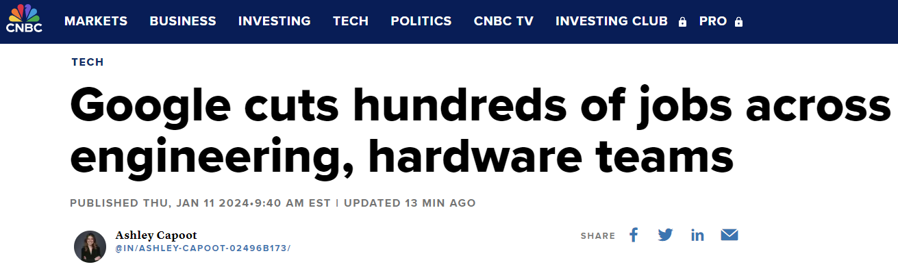 Google cuts hundreds of jobs in engineering team and hardware group.