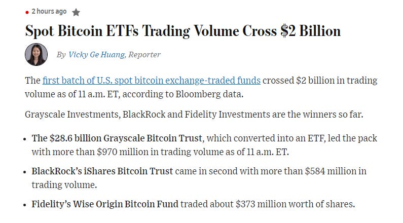 Trading volume of Bitcoin ETFs exceeded 2 million USD this morning right after listing.