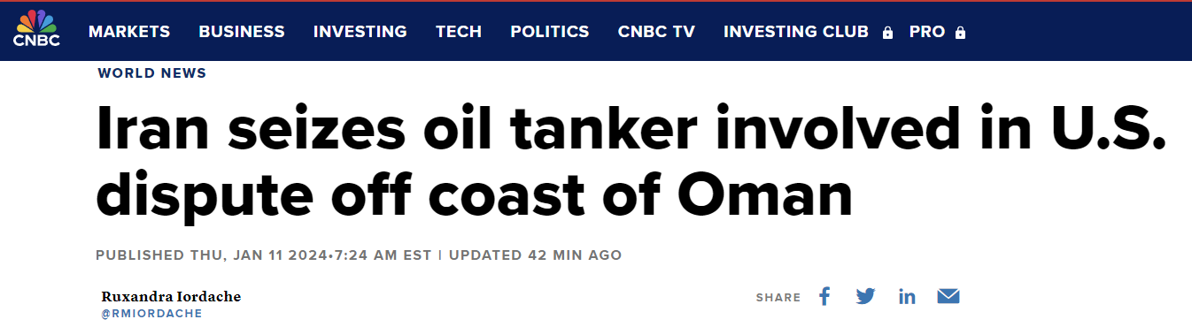 Iran admits to being behind the 'hijacking' of the oil tanker MV St Nikolas in the Gulf of Oman due to dispute between Iran and the US.
