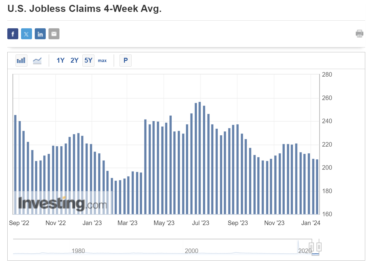 4-week moving average of initial unemployment claims is 207,750, (lower than 208,000 last week).